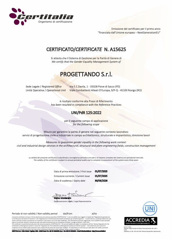 PROGETTANDO Engineering è una società italiana di ingegneria integrata nata nel 2005, con sedi a Rovigo e Padova.